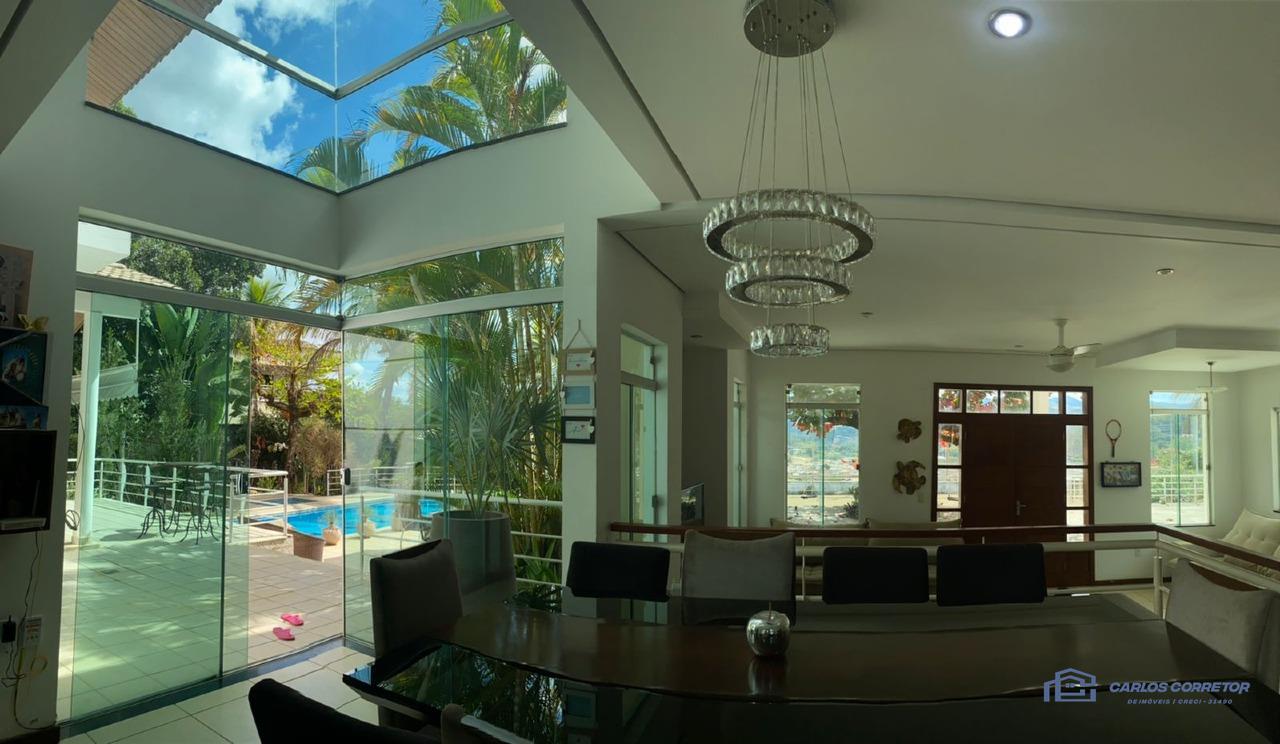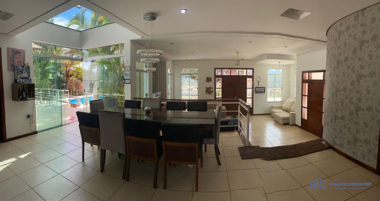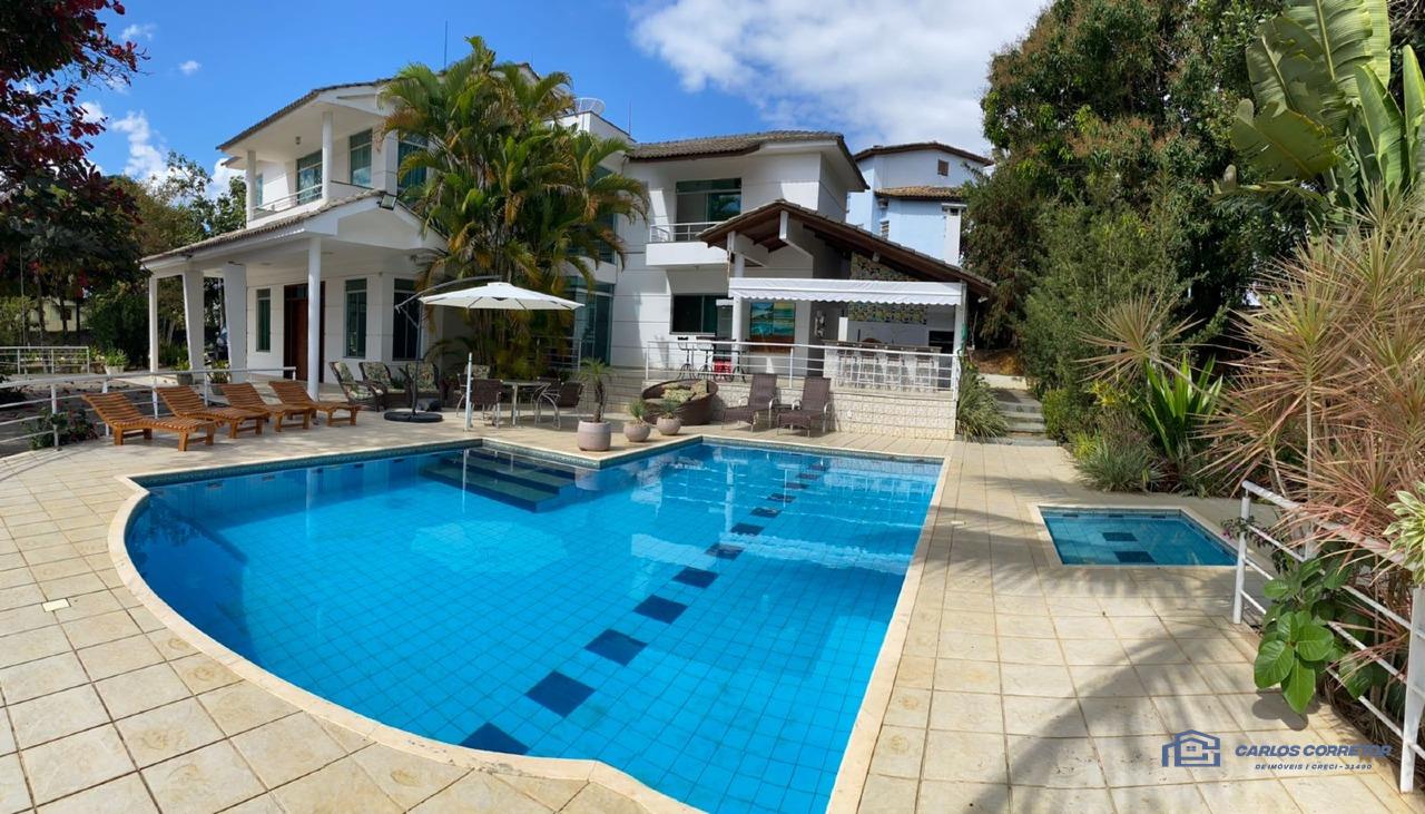 casa com terreno ao todo tem 4300 m² com muito verde e árvores frutíferas, a casa conta com um campo de futebol, salão de jogos, área gourmet com churrasqueira, bancada, freezer e fogão em frente à piscina, duas piscinas sendo uma adulto e outra infantil, Área da fogueira, um adaptador para elevador,7 quartos sendo 6 suíte e dois quartos de hóspedes, uma suíte máster com banheira de hidromassagem, todos os quartos tem sacada e banheiro, e tem 1 banheiro na área externa ao lado da área da churrasqueira, sala de estar, sala de jantar, cozinha planejada, lavanderia com dispensa do lado da cozinha e varanda externa na parte de trás para secagem de roupas, quarto na parte de trás para caseiro, casa toda mobiliada, portão eletrônico com guarita para porteiro!!!